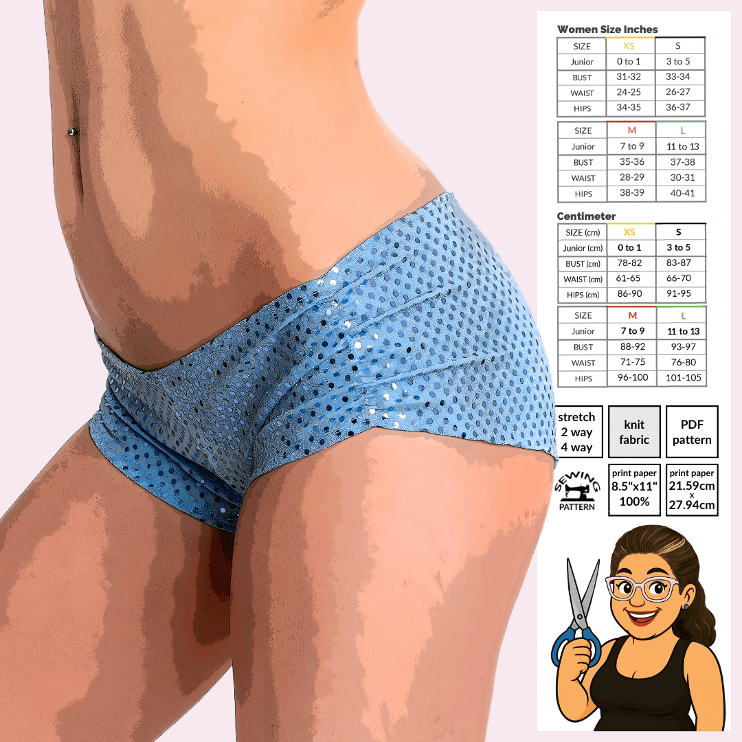 Designed for raves, cosplay, pole fitness, activewear, and exercise classes, this Fitness Shorts PDF sewing pattern offers confident coverage while keeping a cheeky, low-rise fit. This pattern is available in multiple sizes so you can sew a custom fit instead of relying on one-size solutions, making it a great option for costumers, performers, and everyday stretch-sewing projects.